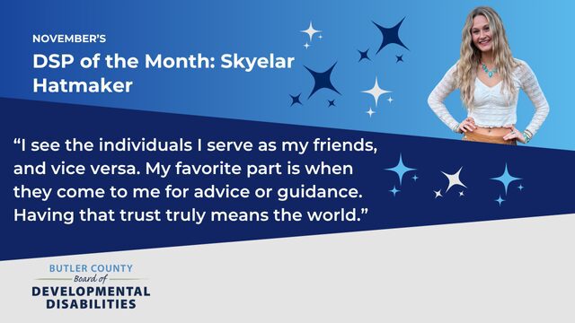 - DSP of the Month – Skyelar HatmakerCongratulations to Skyelar Hatmaker, November’s Direct Support Professional (DSP) of the Month! Before becoming a DSP, Skyelar worked as a…